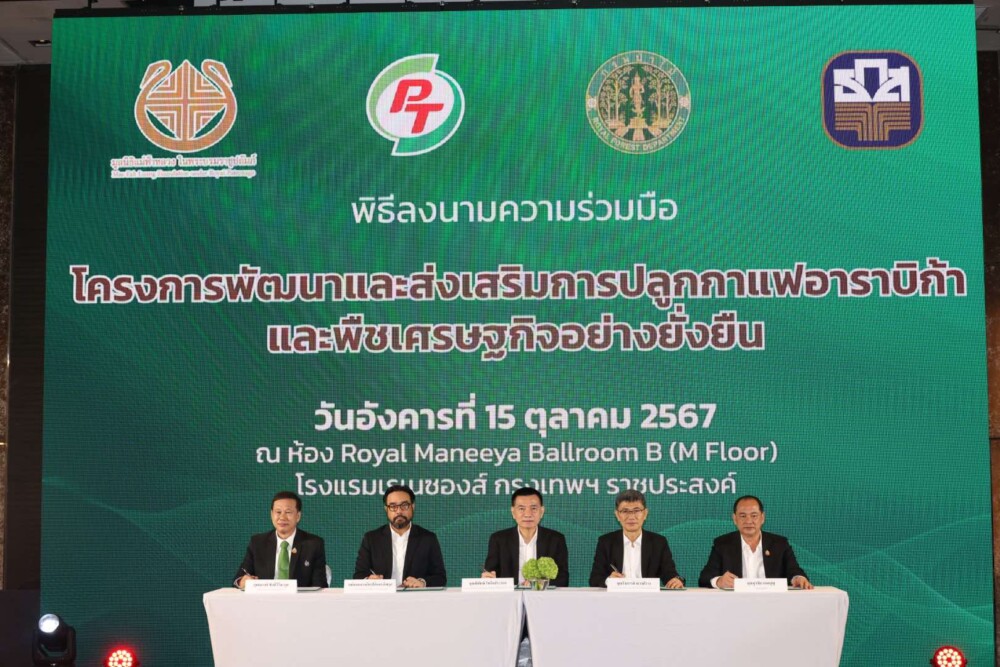 นายณรงค์ ขันติวิริยะกุล รองผู้จัดการธนาคารเพื่อการเกษตรและสหกรณ์การเกษตร (ธ.ก.ส.) ร่วมลงนามบันทึกข้อตกลงความร่วมมือการพัฒนาและส่งเสริมการปลูกกาแฟอราบิก้าและพืชเศรษฐกิจอย่างยั่งยืน ระหว่าง ธ.ก.ส. และ บริษัท พีทีจี เอ็นเนอยี จำกัด (มหาชน) หรือ พีทีจี เพื่อร่วมมือกันพัฒนาพื้นที่ป่าส่งเสริมการปลูกกาแฟอราบิก้า และพืชเศรษฐกิจอย่างยั่งยืน เป็นการรักษาป่าเดิม เพิ่มป่าใหม่ให้มีพื้นสีเขียวมากยิ่งขึ้น พร้อมทั้งยังได้กาแฟอราบิก้าที่มีคุณภาพดีตรงตามความต้องการของตลาด รวมถึงส่งเสริมช่องทางการจัดจำหน่ายสินค้าผลผลิตทางการเกษตรให้กับชุมชนมีรายได้และชีวิตความเป็นอยู่ที่ดีขึ้น