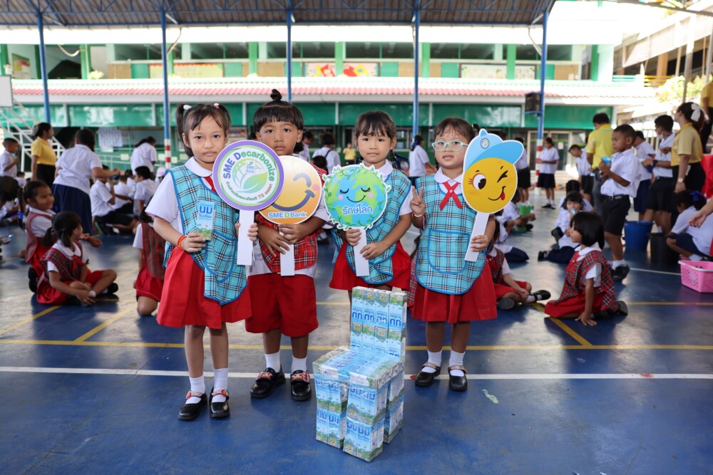 SME D Bank จัดกิจกรรม “ส่งขยะไปเกิดใหม่” ตอบโจทย์ความยั่งยืน ชุบชีวิตกล่องนมเป็นโต๊ะนักเรียน