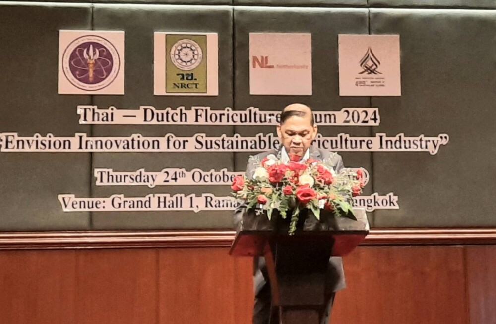 วันที่ 24 ตุลาคม 2567 สำนักงานคณะกรรมการวิจัยแห่งชาติ (วช.)ร่วมกับสถานทูตเนเธอร์แลนด์ประจำประเทศไทย และ กระทรวงการอุดมศึกษา วิทยาศาสตร์ วิจัยและนวัตกรรม (อว.) เจ้าภาพจัดงานสัมมนา “Thai-Dutch Floriculture Forum 2024” ภายใต้ยใต้หัวข้อ “Envision Innovation for a Sustainable Floriculture Industry” ณ โรงแรมรามา การ์เด้นส์ กรุงเทพฯ ภายในงานได้รวบรวมผู้เชี่ยวชาญด้านการปลูกดอกไม้ชั้นนำมากกว่า 200 รายจากประเทศไทยและเนเธอร์แลนด์เพื่อสำรวจแนวโน้ม เทคโนโลยี และแนวทางที่ยั่งยืนในอุตสาหกรรมการปลูกดอกไม้