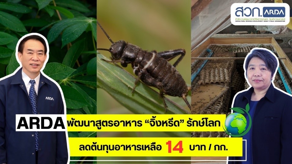 สวก. โชว์งานวิจัยรักษ์โลก นำใบมันสำปะหลังเหลือใช้พัฒนาสูตรอาหาร “จิ้งหรีด” ลดต้นทุน พร้อมเดินหน้าสร้างมาตรฐานฟาร์ม..หวังก้าวเข้าสู่จุดเปลี่ยนอุตสาหกรรมอาหารโลก เผยผลการทดลอง 3 ฟาร์มในพื้นที่ในพื้นที่บ้านผาแดง จ.ลำปาง พบว่าเกษตรกรพอใจกับสูตรอาหารที่สามารถผลิตจิ้งหรีดได้ขนาด 3 นิ้ว ภายในระยะเวลา 45 วัน จากการเลี้ยงแบบปกติต้องใช้เวลา 50 – 60 วัน