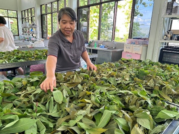 ด้าน ผศ. ฐิฏิกานต์ สุริยะสาร กล่าวเพิ่มเติมในฐานะหัวหน้าโครงการวิจัยฯ ว่า คณะผู้วิจัยฯ ได้ลงพื้นที่คัดเลือกฟาร์มต้นแบบในพื้นที่บ้านผาแดง จ.ลำปาง จำนวน 3 ฟาร์ม ได้แก่ ขุนงาวฟาร์ม วรางคณาฟาร์ม รัตน์บ้านสวนฟาร์ม เป็นฟาร์มนำร่องดำเนินโครงการฯ เนื่องจากกลุ่มเกษตรกรผู้เลี้ยงจิ้งหรีดพื้นที่บ้านผาแดงประสบปัญหาการเลี้ยงจิ้งหรีดที่ได้ผลผลิตน้อย โตช้า ตายมาก และมีค่าอาหารสูง ทางคณะฯ จึงได้ค้นหาพืชที่มีอยู่ทั่วไป หาได้ง่าย และมีราคาถูกในพื้นที่มาทดลองทำอาหารสำหรับเลี้ยงจิ้งหรีด พบว่าชาวบ้านในพื้นที่บ้านผาแดงปลูกต้นมันสำปะหลังและทิ้งหรือเผาใบมันเป็นจำนวนมาก จึงได้ทดลองนำใบมันสำปะหลังแป็นวัสดุเหลือใช้ทางการเกษตรมาทำการทดลอง โดยใช้ใบมันสับปะหลังบดผงทดแทนอาหารสำเร็จรูปที่จำหน่ายในท้องตลาด ในปริมาณที่แตกต่างกัน