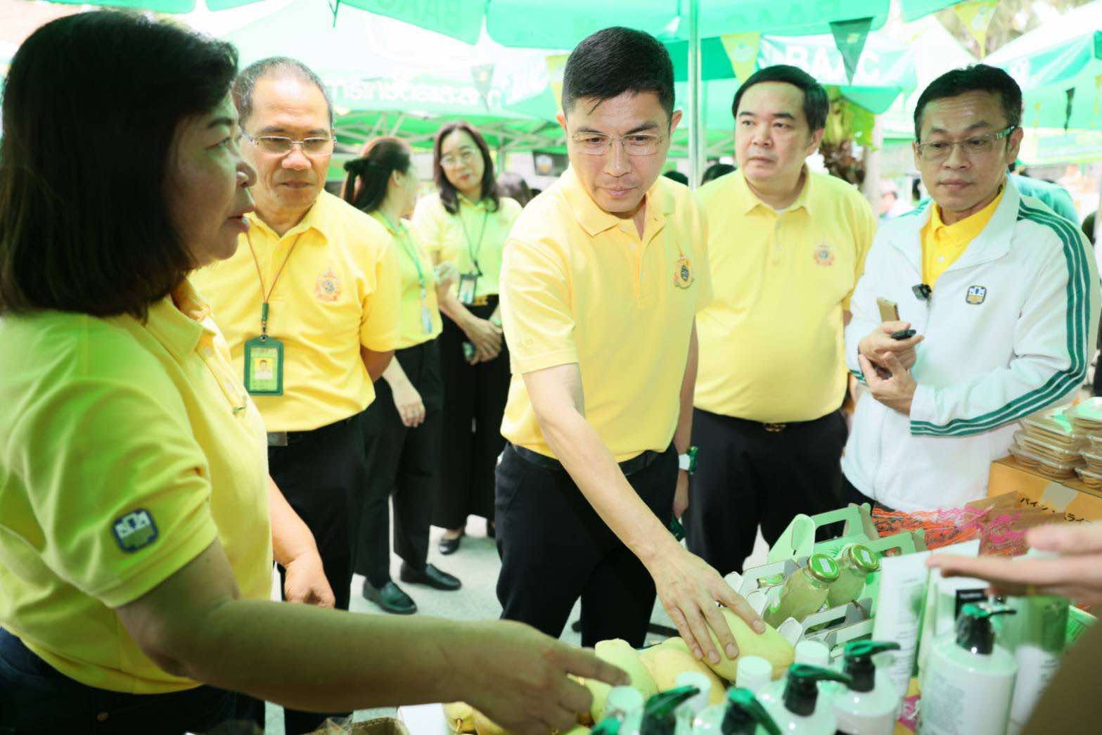 วันที่ 28 ตุลาคม 2567 นายฉัตรชัย ศิริไล ผู้จัดการธนาคารเพื่อการเกษตรและสหกรณ์การเกษตร (ธ.ก.ส.) พร้อมคณะผู้บริหารเยี่ยมชมบูธในงานตลาดนัดของดีวิถีชุมชน ภายใต้ธีม “Western Farm Fair” ในโอกาสครบรอบวันสถาปนา ธ.ก.ส. ปีที่ 59 ที่ยกผลผลิตสินค้าดัง เจ้าเด็ด จากเกษตรกรลูกค้า ธ.ก.ส. ทั่วประเทศโดยเฉพาะในพื้นที่ภาคตะวันตกมาไว้ในงานครั้งนี้ อาทิ ผักผลไม้อินทรีย์นานาชนิด ผลิตภัณฑ์สินค้าจากผู้ประกอบการ SME และ ผลิตภัณฑ์ที่ได้รับมาตรฐานคุณภาพ A-Product กว่า 60 ร้านค้า คัดสรรส่งตรงมาไว้ในงาน โดยบรรยากาศในวันแรก มีประชาชนเข้ามาจับจ่ายใช้สอยอย่างคึกคัก