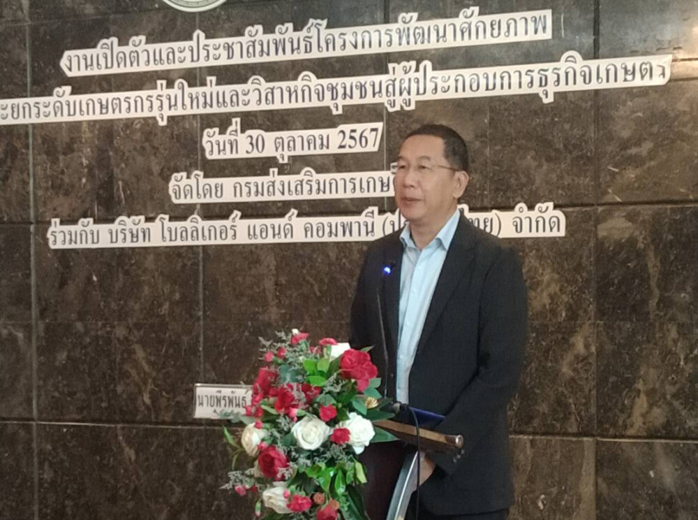 นายพีรพันธ์ คอทอง อธิบดีกรมส่งเสริมการเกษตร กล่าวว่า ปัจจุบันกรมส่งเสริมการเกษตรมีเกษตรกรรุ่นใหม่กว่า 25,500 คน และวิสาหกิจชุมชน กว่า 73,000 แห่ง และพัฒนาเป็นเครือข่ายวิสาหกิจชุมชนอีกกว่า 578 เครือข่าย การพัฒนาศักยภาพของเกษตรกรรุ่นใหม่และวิสาหกิจชุมชนสู่การเป็นผู้ประกอบการธุรกิจเกษตร จึงต้องเริ่มจากกระบวนการศึกษาวิเคราะห์ความเป็นไปได้ทางธุรกิจ เพื่อนำไปสู่การพัฒนาทักษะด้านการบริหารจัดการองค์กร การพัฒนาผลิตภัณฑ์ การตลาด E-Marketing