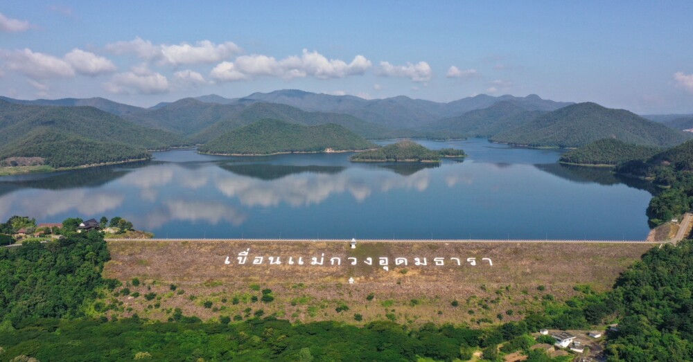เขื่อนแม่กวงอุดมธารา อ.ดอยสะเก็ด จ.เชียงใหม่ แหล่งท่องเที่ยวห่างจากตัวเมืองเชียงใหม่ เพียง 30 นาที ไฮไลท์สำคัญคือ “สะพานแขวนเชื่อมใจ” ที่สามารถเดินถ่ายรูปพร้อมชมวิวเขื่อนที่รายล้อมด้วยขุนเขา แบบ 360 องศา หรือจะตั้งแคมป์รับลมหนาวก็ได้ฟีลเต็มสิบ ปัจจุบันมีปริมาณน้ำประมาณ 209 ล้าน ลบ.ม. คิดเป็นร้อยละ 80 ของความจุอ่าง ฯ ส่งน้ำสนับสนุนให้กับพื้นที่ท้ายน้ำได้อย่างเพียงพอตลอดทั้งปี