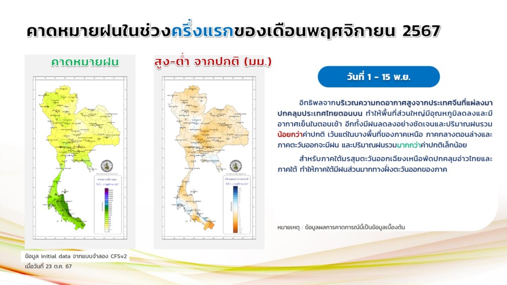 ส่วนบลุ่มน้ำชี-มูล กรมชลประทาน ร่วมกับกรมฝนหลวงและการบินเกษตร ติดตามสภาพอากาศ สถานการณ์น้ำ เพื่อวางแผนปฏิบัติการฝนหลวงเติมน้ำต้นทุนให้กับเขื่อนและอ่างเก็บน้ำที่มีปริมาณน้อย ได้แก่ เขื่อนลำนางรอง จ.บุรีรัมย์ และเขื่อนลำตะคอง จ.นครราชสีมา ให้มีปริมาณน้ำต้นทุนเพียงพอสำหรับรองรับความต้องการน้ำในช่วงฤดูแล้งนี้