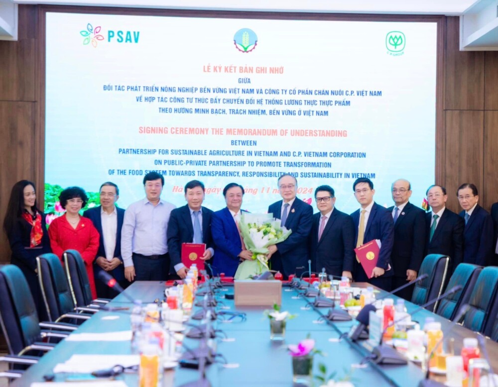 นายเล มินห์ ฮว่าน รัฐมนตรีว่ าการกระทรวงเกษตรและพัฒนาชนบท เวียดนาม และ นายอดิเรก ศรีประทักษ์ ประธานคณะกรรมการบริหาร บริษัท เจริญโภคภัณฑ์อาหาร จำกัด (มหาชน) ร่วมเป็นประธานในพิธี ลงนามความร่วมมือระหว่างภาครั ฐและภาคเอกชน ระหว่าง ซี.พี.เวียดนาม กับ องค์กรความร่วมมือเพื่อการพั ฒนาการเกษตรที่ยั่งยืนในเวี ยดนาม (The Partnership for Sustainable Agriculture in Vietnam: PSAV) องค์กรที่จัดตั้งขึ้นภายใต้ กระทรวงเกษตรและพัฒนาชนบทของเวี ยดนาม