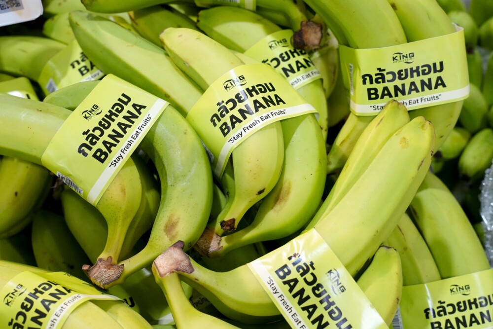 โก โฮลเซลล์ (GO WHOLESALE) รายงานว่า ได้ร่วมกับ บริษัท คิงโปรเซสซิ่ง จำกัด ทำ “สายคาด” สินค้าประเภทกล้วยหอม แพ็ค 4 ลูกขึ้นมาเป็นครั้งแรก ทำขึ้นจากกระดาษชนิดพิเศษ มีขนาดความกว้างประมาณ 2 นิ้ว พันรอบกล้วยแพ็ค 4 ลูก ซึ่งจะมีข้อมูลรายละเอียดสินค้า และผู้ผลิต กำกับไว้ เพื่อทดแทนการใช้บรรจุภัณฑ์พลาสติก หลังจากเห็นผลกระทบที่เกิดขึ้น โดยสายคาดนี้ ทำขึ้นจากกระดาษชนิดพิเศษ มีขนาดความกว้างประมาณ 2 นิ้ว พันรอบกล้วยแพ็ค 4 ลูก ซึ่งจะมีข้อมูลรายละเอียดสินค้า และผู้ผลิต กำกับไว้ด้วย