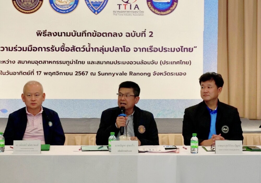อวย่างไรก็ตาม ก่อนหน้านี้ เมื่อวันที่ 1 สิงหาคม 2567 ทั้ง 2 สมาคมฯ ได้ลงนามความร่วมมือในการรับซื้อวัตถุดิบสัตว์น้ำกลุ่มปลาโอของไทยจากเรือประมงไทยไปแล้ว 1 รอบ ในช่วงครึ่งปีหลัง 2567 (มิถุนายน – ธันวาคม) โดยกำหนดปริมาณการรับซื้อไว้ 20,000 ตัน คิดเป็นมูลค่า 800 ล้านบาทซึ่งการดำเนินการที่ผ่านมา พบว่ามีความร่วมมือร่วมใจในการแก้ไขปัญหาราคาสัตว์น้ำตกต่ำเป็นอย่างดี สามารถช่วยเหลือและบรรเทาความเดือดร้อนของพี่น้องชาวประมงได้เห็นผลอย่างเป็นรูปธรรม