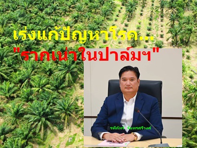 กรมวิชาการเกษตร เร่งแก้ปั ญหาโรคลำต้นเน่าปาล์มน้ำมัน พร้อมระดมการทดสอบวิธีป้องกันกำจัด และพัฒนาเทคนิคการตรวจพบเชื้ อสาเหตุโรค ชะลอการเข้าทำลาย หลังพบการระบาดในพื้นที่จังหวัดกระบี่ สุราษฎร์ธานี นครศรีธรรมราช ชุมพร สตูล ตรัง ระยอง สงขลา ชลบุรี พัทลุง นราธิวาส รวม 12,462 ไร่
