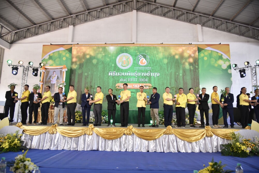 ในโอกาสนี้ โฆษกเกษตรฯ (ฝ่ายการเมือง) และคณะผู้บริหารได้มอบต้นพันธุ์ยางชำถุง พันธุ์ RRIT 3904 จำนวน 904 ต้น พร้อมทั้งมอบโฉนดต้นยางพาราให้กับเกษตรกร จำนวน 20 ราย รวมถึงมอบโฉนดเพื่อการเกษตรให้แก่เกษตรกร จำนวน 30 ราย เพื่อสร้างโอกาสการเข้าแหล่งทุนทางการเกษตรเพิ่มขึ้นต่อไป