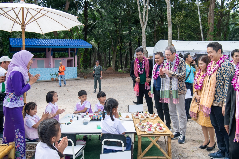 โดยมี นายสุคนธ์ หนูภักดี รองผู้ว่าราชการจังหวั ดสุราษฎร์ธานี เป็นประธานในพิธี พร้อมด้วย นายฮิโรยาสุ ซาโต้ รองประธานหอการค้าญี่ปุ่น และประธานส่วนการศึกษา คณะกรรมการฝ่ายความช่วยเหลือสั งคม นายจอมกิตติ ศิริกุล กรรมการและเลขาธิการ มูลนิธิเจริญโภคภัณฑ์พัฒนาชีวิ ตชนบท นายวราราชย์ เรืองศรี ผู้เชี่ยวชาญอาวุโส ผู้แทนรองกรรมการผู้จัดการอาวุ โส ซีพีเอฟ เเละ ดร.สุชาดา ลิ่มสวัสดิ์ ผู้อำนวยการสำนั กงานเขตพื้นที่การศึกษาประถมศึ กษาสุราษฎร์ธานี เขต 2 พร้อมคณะครูและนักเรียน ณ โรงเรียนบ้านคลองชะอุ่น อ.พนม จ.สุราษฎร์ธานี