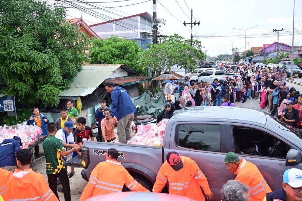 เมื่อ เวลา 17.30 น. วันที่ 1 ธันวาคม 2567 ศ.ดร.นฤมล ภิญโญสินวัฒน์ รัฐมนตรีว่าการกระทรวงเกษตรและสหกรณ์ พร้อมด้วย นายอิทธิ ศิริลัทยากร รัฐมนตรีช่วยว่าการกระทรวงเกษตรและสหกรณ์ และนายอัครา พรหมเผ่า รัฐมนตรีช่วยว่าการกระทรวงเกษตรและสหกรณ์ ผู้บริหารสังกัดกระทรวงเกษตรและสหกรณ์ เจ้าหน้าที่ส่วนจังหวัด ลงพื้นที่ ชุมชนยะกัง ถนนระแงะมรรคา ต.บางนาค อ.เมือง จ.นราธิวาส ช่วยเหลือพี่น้องเกษตรกรที่ประสบอุทกภัย พร้อมแจกถุงยังชีพ จำนวน 700 ถุง และลงเรือกู้ภัยพบปะเกษตรกรที่อยู่ในจุดน้ำท่วมกว่า 60 ครัวรือน