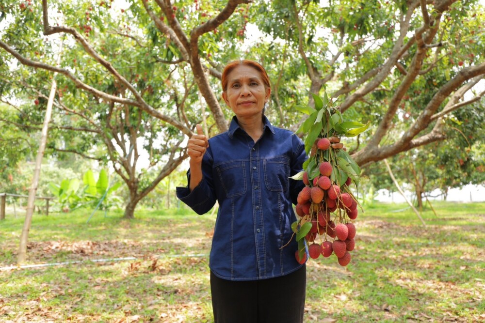 ด้านนางสาวปวีณา เชยชุ่ม ผู้อำนวยการศูนย์วิจัยและพัฒนาการเกษตรนครพนม และคณะนักวิจัยของศูนย์วิจัยและพัฒนาการเกษตรนครพนม ได้คัดเลือกนางรัศมี อุทาวงค์ เป็นเกษตรกรต้นแบบ “ลิ้นจี่ นครพนม 1 ต้นแบบงานวิจัย สู่สินค้าเกษตร GI”โดยนางรัศมี มีประสบการณ์การด้านการปลูกลิ้นจี่ นครพนม 1 ตั้งแต่รุ่นพ่อสู่รุ่นลูกร่วม 26 ปี และเป็นประธานแปลงใหญ่ลิ้นจี่ นครพนม 1 ตำบลขามเฒ่า จังหวัดนครพนม คณะนักวิจัยศูนย์วิจัยและพัฒนาการเกษตรนครพนม ได้นำเทคโนโลยีการผลิตลิ้นจี่นครพนม 1 ไปถ่ายทอดองค์ความรู้ให้กับเกษตรกร ทั้งเรื่องการใช้พันธุ์ลิ้นจี่นครพนม 1 ของกรมวิชาการเกษตร เทคโนโลยีการใส่ปุ๋ยตามคำแนะนำ เทคโนโลยีการตัดแต่งกิ่ง และเทคโนโลยีการป้องกัดกำจัดแมลงศัตรูพืช