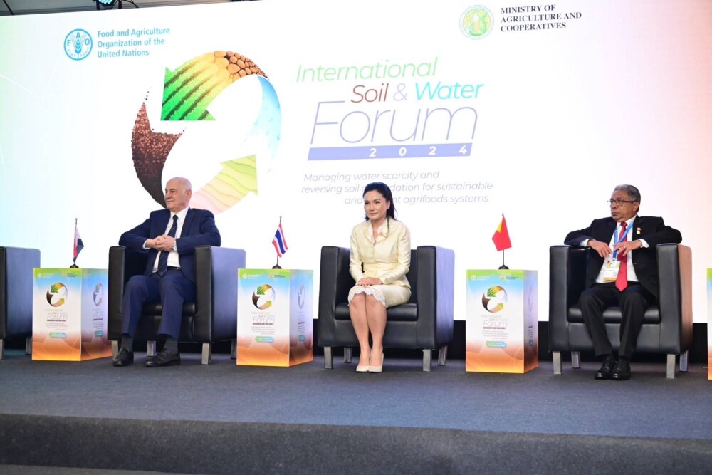กระทรวงเกษตรฯ จึงร่วมกับ FAO จัดการประชุมนานาชาติว่าด้วยการจัดการทรัพยากรดิน และน้ำ เพื่อความมั่นคงทางอาหารอย่างยั่งยืน (The International Soil and Water Forum 2024) โดยมีวัตถุประสงค์เพื่อสร้างความมุ่งมั่นในเรื่องการจัดการดิน และน้ำอย่างบูรณาการที่ยั่งยืน ซึ่งเป็นรากฐานของการพลิกโฉมระบบเกษตรและอาหาร อีกทั้งเพื่อเทิดทูนพระอัจฉริยภาพพระบาทสมเด็จพระบรมชนกาธิเบศร มหาภูมิพลอดุลยเดชมหาราช บรมนาถบพิตร ด้านดินและน้ำ เป็นโอกาสอันดีในการนำเสนอผลงานวิจัยด้านดินและน้ำของนักวิชาการทั้งไทยและต่างชาติ รวมถึงเป็นเวทีให้แก่ผู้นำไทยและต่างชาติร่วมให้ข้อคิดเห็นและแลกเปลี่ยนการดำเนินงานเพื่อการอนุรักษ์ดินและน้ำเพื่อบรรลุเป้าหมายการพัฒนาที่ยั่งยืนของสหประชาชาติ