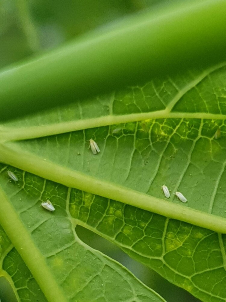 อย่างไรก็ตาม หากพบการระบาดให้ตัดยอดหรือถอนต้น นำไปทำลายนอกแปลงและพ่นสารกำจัดแมลงบริเวณที่พบและบริเวณโดยรอบที่มีการระบาดทันที สารเคมีแนะนำได้แก่ ไทอะมีทอกแซม 25% WG อัตรา 4 กรัม หรืออิมิดาโคลพริด 70% WG อัตรา 4 กรัม หรือไดโนทีฟูแรน 10% WP อัตรา 20 กรัม หรือโพรไทโอฟอส 50% EC อัตรา 50 มิลลิลิตร โดยเลือกสารชนิดใดชนิดหนึ่งผสมน้ำ 20 ลิตร