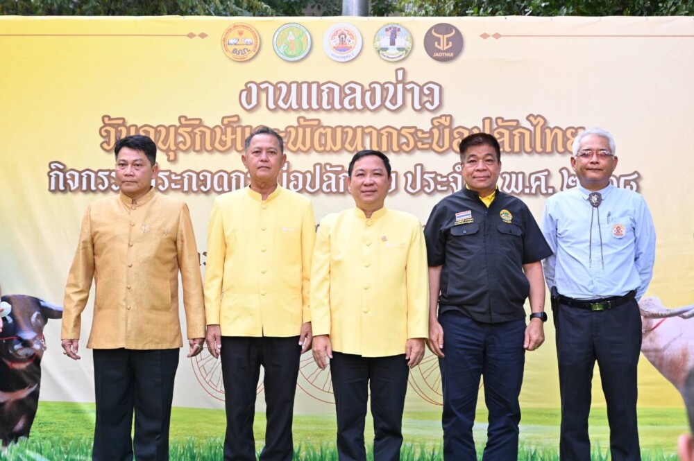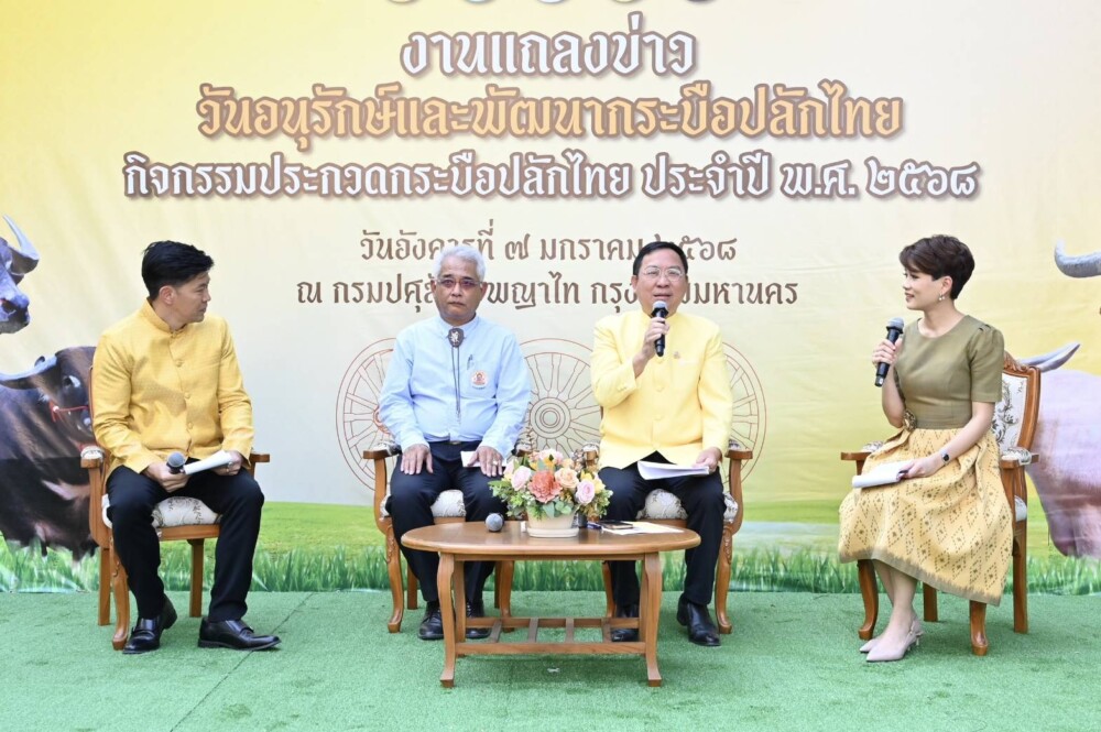 วันอังคารที่ 7 มกราคม 2568 นายสัตวแพทย์สมชวน รัตนมังคลานนท์ อธิบดีกรมปศุสัตว์ แถลงข่าวการจัดงานวันอนุรักษ์และพัฒนากระบือปลักไทย ประจำปี พ.ศ. 2568 ภายใต้หลัก “ปรัชญาเศรษฐกิจพอเพียง และการอนุรักษ์สายพันธุ์กระบือปลักไทย” พร้อมด้วยผู้บริหารกรมปศุสัตว์ สื่อมวลชน และผู้ที่เกี่ยวข้อง เข้าร่วมฯ เพื่อประชาสัมพันธ์โครงการจัดงานวันอนุรักษ์และพัฒนากระบือปลักไทย ประจำปี พ.ศ. 2568 ที่กำหนดจัดขึ้นในระหว่างวันที่ 11 – 12 มกราคม 2568 ณ ศูนย์วิจัยและพัฒนาโคนม อำเภอปากช่อง จังหวัดนครราชสีมา โดยการแถลงข่าวได้มีการจัดแสดงกระบือปลักไทย จำนวน2 ตัว ณ ลานเอนกประสงค์หน้าเสาธง หน้าตึกอำนวยการ กรมปศุสัตว์ พญาไท กรุงเทพฯ