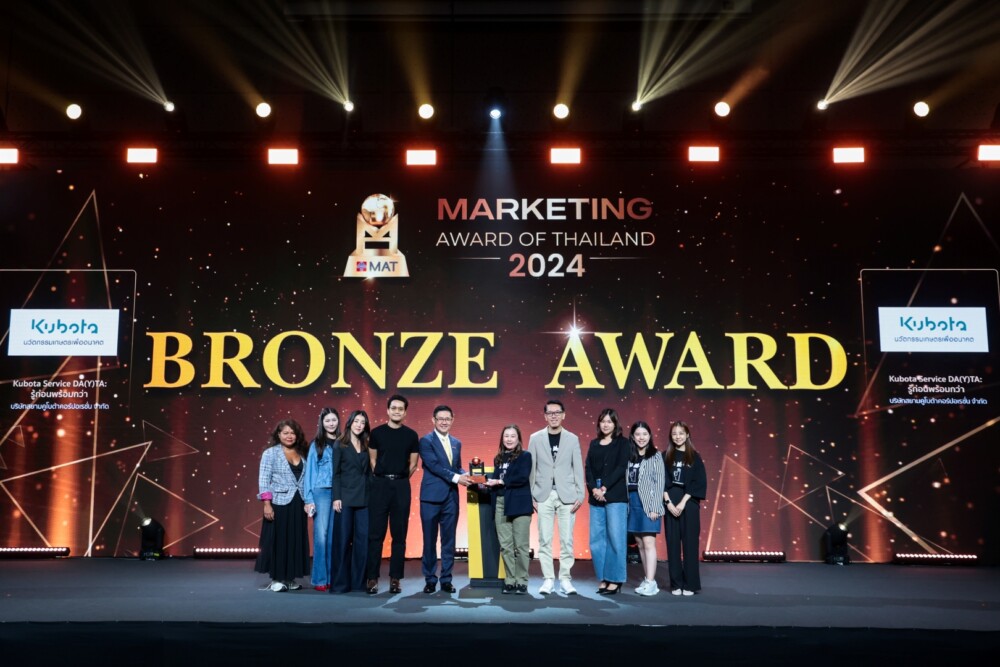 สยามคูโบต้า ประกาศความภาคภูมิใจครั้งยิ่งใหญ่ คว้ารางวัล GRAND PRIZE สุดยอดแคมเปญการตลาดแห่งปี ด้วยรางวัล GOLD AWARD สุดยอดแคมเปญการตลาดประเภท Strategy Marketing จากผลงาน “จากแปลงนาสู่สนามแข่งมิติใหม่ของกีฬาเพื่อเกษตรกรไทย” พร้อมกวาด 2 รางวัล BRONZE AWARD การตลาดยอดเยี่ยมประเภท Innovation and Martech จากผลงาน “KUBOTA SERVICE DA(Y)TA รู้ก่อนพร้อมกว่า” และประเภท Sustainable Marketing จากผลงาน “Turn waste to Agri-Wear” ในงาน Marketing Awards of Thailand 2024 (MAT Award 2024 ) จัดโดย สมาคมการตลาดแห่งประเทศไทย