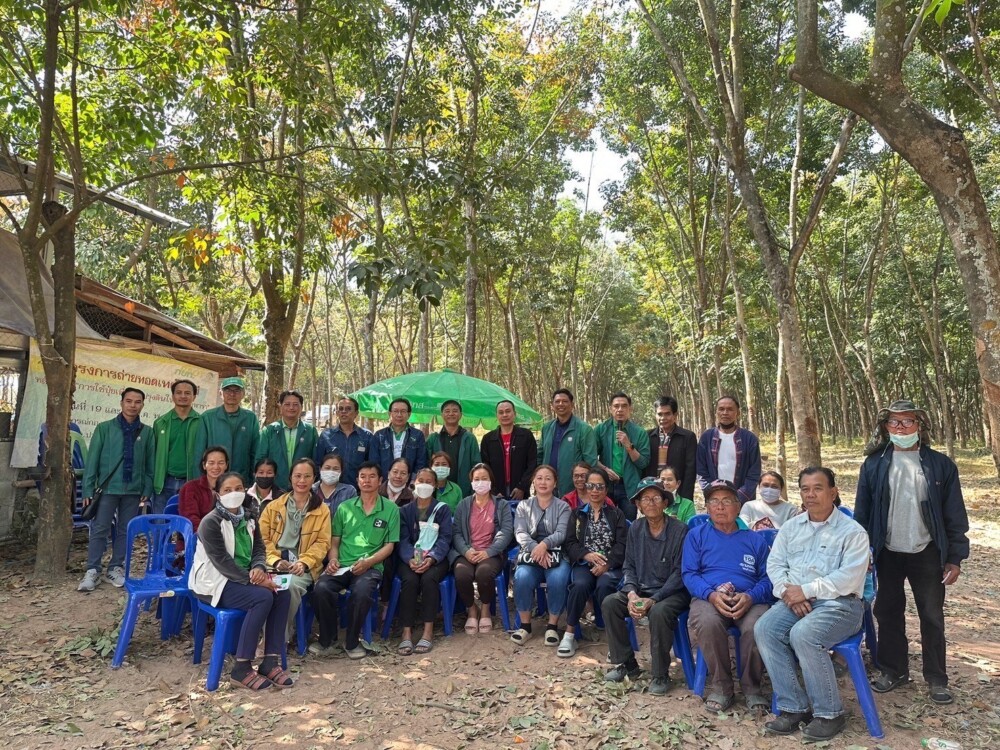 นายเกียรติศักดิ์ พระวร ผู้ช่วยผู้จัดการธนาคารเพื่อการเกษตรและสหกรณ์การเกษตร (ธ.ก.ส.) นำคณะเจ้าหน้าที่จากการยางแห่งประเทศไทย และสำนักจัดการทรัพยากรป่าไม้ที่ 6 กรมป่าไม้ ลงพื้นที่ศึกษาดูงานการดำเนินงานโครงการ BAAC Carbon Credit และการใช้ต้นยางพาราเป็นหลักประกัน ณ ชุมชนบ้านกุดหมากไฟ จ.อุดรธานี และสหกรณ์กองทุนสวนยางโนนสัง จ.หนองบัวลำภู ซึ่งถือเป็นส่วนหนึ่งของการดำเนินงานสู่ความเป็นกลางทางคาร์บอน และลดการปล่อยก๊าซเรือนกระจกสุทธิเป็นศูนย์ภายในปี ค.ศ 2065
