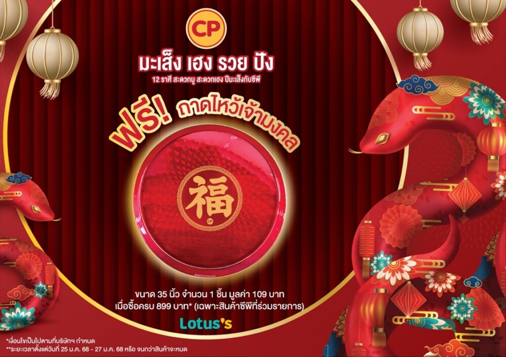 บริษัท เจริญโภคภัณฑ์อาหาร จำกัด (มหาชน) หรือซีพีเอฟ ตอกย้ำเจ้าแห่งเทศกาล ผนึกกำลัง แม็คโคร (Makro) และ โลตัส (Lotus’s) จัดแคมเปญ “ปีมะเส็ง เฮง รวย ปัง” เสิร์ฟชุดไหว้ตรุษจีน ยกขบวนผลิตภัณฑ์คุณภาพดี สด สะอาด ปลอดภัย และสะดวกสบายในการไหว้ ถูกต้องตามหลักความเชื่อ เสริมความมงคล การงาน มั่งคั่ง ความสมบูรณ์ครบทุกด้าน มีให้เลือก 2 รูปแบบ ได้แก่ รูปแบบดั้งเดิมที่เน้นของไหว้เป็นตัว และรูปแบบสมัยใหม่ที่ผสมผสานความเรียบง่ายให้เหมาะสมกับยุคสมัย พร้อมกิจกรรมพิเศษที่มีทั้งดูดวง ลุ้นรับของรางวัลมงคล และส่วนลดมากมาย