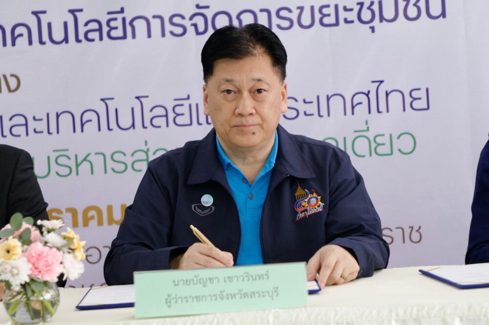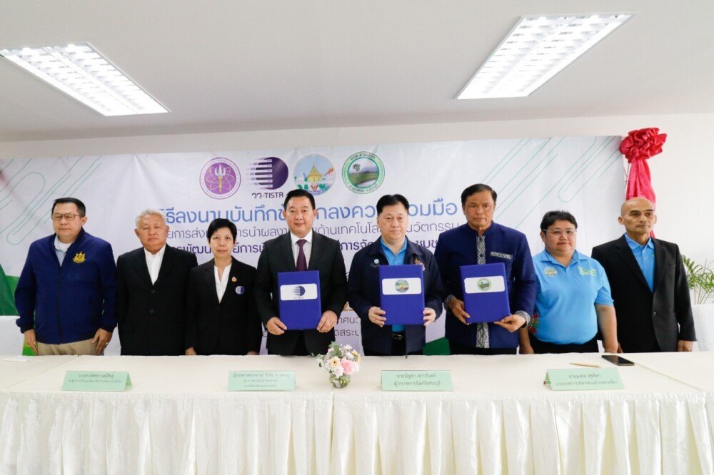 นายบัญชา เชาวรินทร์ ผู้ว่าราชการจังหวัดสระบุรี พร้อมด้วย ผศ.ดร.วีรชัย อาจหาญ ผู้ว่าการสถาบันวิจัยวิทยาศาสตร์และเทคโนโลยีแห่งประเทศไทย (วว.) กระทรวงการอุดมศึกษา วิทยาศาสตร์ วิจัยและนวัตกรรม (อว.) และนายมงคล สุขศิลา นายกองค์การบริหารส่วนตำบลตาลเดี่ยว ลงนามบันทึกข้อตกลงความร่วมมือว่าด้วยการส่งเสริมการนำผลงานวิจัยด้านเทคโนโลยีและนวัตกรรมในการพัฒนาศูนย์การเรียนรู้เทคโนโลยีการจัดการขยะชุมชน
