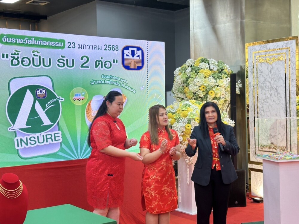 นายทองคำ เกตุโชติ รองผู้จัดการธนาคารเพื่อการเกษตรและสหกรณ์การเกษตร (ธ.ก.ส.) เป็นประธานการจับรางวัลในแคมเปญ “ซื้อปั๊บรับ 2 ต่อ ซีซั่น 2 ” สำหรับลูกค้าที่ซื้อกรมธรรม์ผ่านแอปพลิเคชัน A Insure ระหว่างวันที่ 5 เมษายน 2567 – 31 ธันวาคม 2567 มีสิทธิ์ลุ้นรางวัล 2 ต่อ