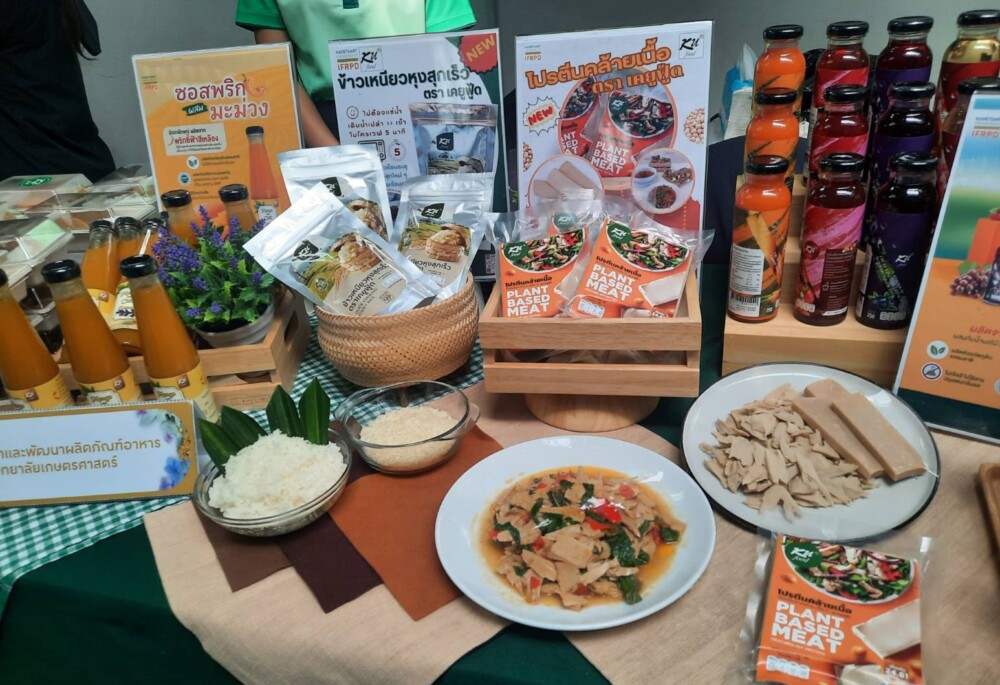 ขณะที่ ผศ.ดร.กฤษณ์ วันอินทร์ รองอธิการบดีฝ่ายนวัตกรรมและพันธกิจเพื่อสังคม มก.กล่าวถึงการจัดแสดงผลงานวิจัยนวัตกรรมของมหาวิทยาลัยเกษตรศาสตร์ว่า การจัดแสดงนิทรรศการผลงานของคณะ สำนัก สถาบัน มุ่งเน้นนวัตกรรมเพื่อสังคมสู่ความเป็นกลางทางคาร์บอน อาทิ พันธุ์ข้าวลดโลกร้อน และข้าวโภชนาการสูง ข้าวสีเพื่อสุขภาพ สายพันธุ์ใหม่ “KU80 นิลกาฬ” ข้าวเจ้าที่ไม่ไวต่อช่วงแสง มีปริมาณอมิโลสต่ำ ร้อยละ 15.23 เครื่องกรองอากาศและฆ่าเชื้อ UVC เรือไฟฟ้า กฟผ. ชลพัฒน์ 1 ยานสำรวจทางอุทกศาสตร์ไร้คนขับ (Unmanned surface vehicle for hydrographic survey) อุปกรณ์จ่ายพลังงานไฟฟ้าสำรองเชื้อเพลิงไฮโดรเจน ถ่านชีวภาพไบโอชาร์ อุทยานการแพทย์ มหาวิทยาลัยเกษตรศาสตร์ สู่ความยั่งยืนทางสุขภาพ การประกวดผลิตภัณฑ์ที่เป็นมิตรต่อสิ่งแวดล้อม TGDA Awards 2025