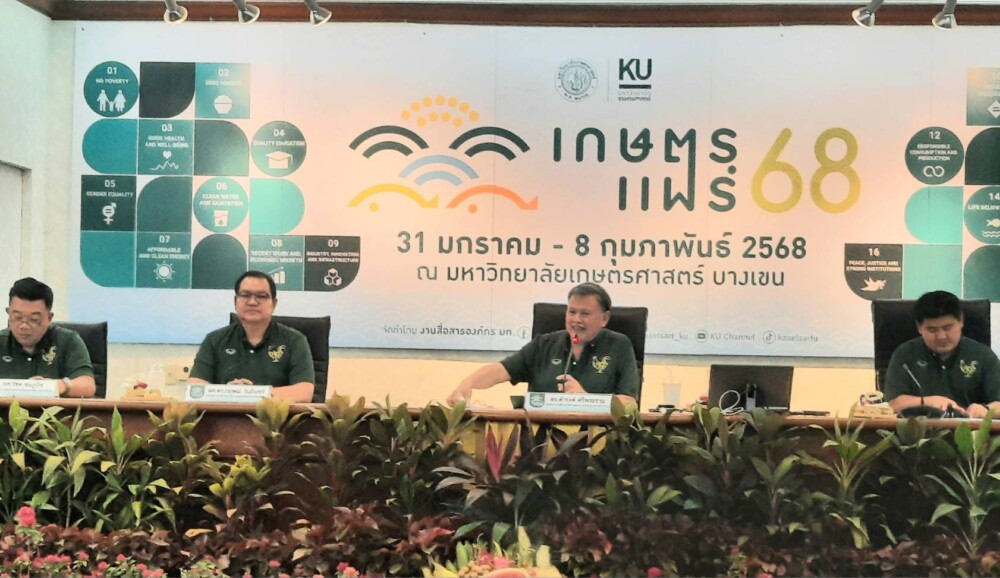 มหาวิทยาเกษตรศาสตร์ พร้อมแล้วจัด “งานเกษตรแฟร์ ประจำปี 2568” อย่างยิ่งใหญ่ ภายใต้แนวคิด “เศรษฐกิจเจริญก้าวไกล สังคมไทยไร้คาร์บอน” ระหว่างวันที่ 31 มกราคม – 8 กุมภาพันธ์ 2568 รวม 9 วัน 9 คืน ล่าสุดประเทศต่างๆแจ้งมาร่วมงานแล้วกว่า 20 ประเทศ พิเศษสุดปีนี้นิสิตคณะแพทย์ศาสตร์ ประเดิมโชว์ผลงานครั้งแรกเน้นอาหารเป็นยา “รองอธิการบดี “ดำรง ศรีพระราม” ฝากบอกเที่ยวงานเกษตรแฟร์ปีนี้เตรียมเสื้อกันหนาวด้วย