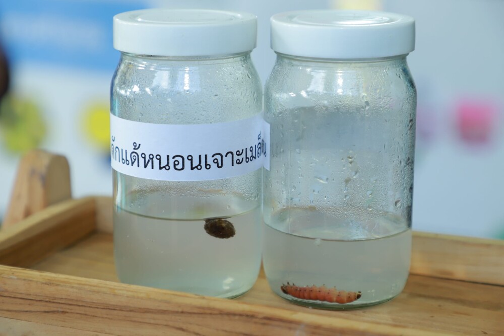และ 5) หากพบผีเสื้อหนอนเจาะเมล็ดทุเรียนเริ่มระบาด ให้ใช้สารคาร์บาริล 85% WP อัตรา 50 กรัม ต่อน้ำ 20 ลิตร หรือ เดลทาเมทริน 3% EC อัตรา 15 มิลลิลิตร ต่อน้ำ 20 ลิตร หรือ แลมบ์ดา-ไซฮาโลทริน 2.5% CS อัตรา 20 มิลลิลิตร ต่อน้ำ 20 ลิตร ให้พ่นสารห่างกันทุก 7 – 10 วัน ตามคำแนะนำของกรมวิชาการเกษตร โดยไม่ควรใช้สารเคมีชนิดเดียวติดต่อกันเป็นเวลานาน และควรมีการสลับชนิดสารเคมี เพื่อป้องกันศัตรูพืชเกิดความต้านทาน