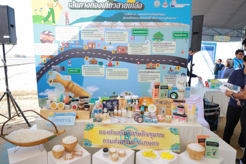 พร้อมกันนี้ยังส่งเสริมเส้นทางท่องเที่ยวสายเกลือ ในพื้นที่ 3 จังหวัด ซึ่งเป็นพื้นที่สำคัญของการทำนาเกลือคือ สมุทรสาคร สมุทรสงคราม และเพชรบุรี มีจุดท่องเที่ยวตลอดเส้นทางรวม 10 แห่ง ประกอบด้วย จุดที่ 1 บ้านย่า สปาเกลือ ที่อนุรักษ์วิถีการทำนาเกลือแบบดั้งเดิม และนำเกลือทะเลไทยมาสร้างผลิตภัณฑ์จากภูมิปัญญาท้องถิ่นอย่างเป็นมิตรกับสิ่งแวดล้อม เช่น สบู่เกลือ ครีมทาผิวเกลือ เพื่อจำหน่ายและบริการสปาให้แก่นักท่องเที่ยว จุดที่ 2 ศูนย์การเรียนรู้โรงเรียนนาเกลือ เป็นแปลงนาเกลือ มาตรฐาน GAP แห่งแรกของไทย เปิดพื้นที่ให้เป็นโรงเรียนนาเกลือ และฝึกปฏิบัติการทำนาเกลือให้ผู้ที่สนใจได้เข้าชม