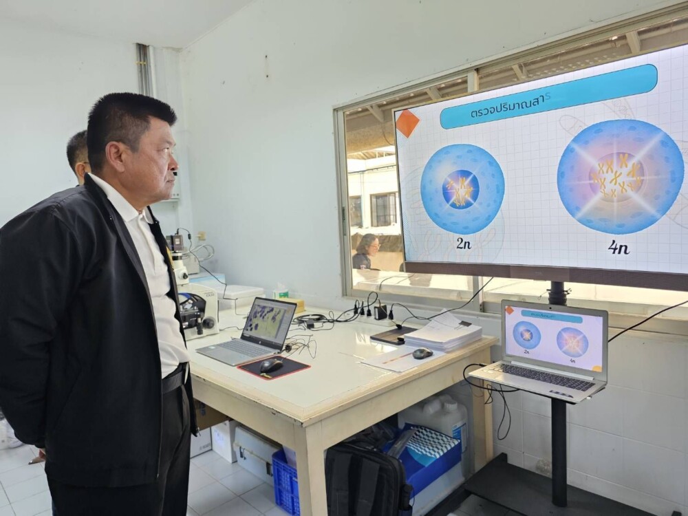 วันที่ 4 กุมภาพันธ์ 2568 นายบัญชา สุขแก้ว อธิบดีกรมประมง ลงลงพื้นที่ ณ ศูนย์วิจัยและพัฒนาพันธุกรรมสัตว์น้ำเพชรบุรี จังหวัดเพชรบุรี เพื่อตรวจเยี่ยมและรับฟังรายงานความก้าวหน้าโครงการเหนี่ยวนำชุดโครโมโซม 4n ในปลาหมอคางดำ โดยมีนายอาคม ชุ่มธิ ผู้อำนวยการกองวิจัยและพัฒนาพันธุกรรมสัตว์น้ำ นายคงภพ อำพลศักดิ์ ผู้เชี่ยวชาญด้านพันธุกรรมสัตว์น้ำและประธานคณะทำงานโครงการเหนี่ยวนำชุดโครโมโซม 4n ในปลาหมอคางดำ และเจ้าหน้าที่ศูนย์ฯ ให้การต้อนรับพร้อมรายงานความก้าวหน้าโครงการฯ