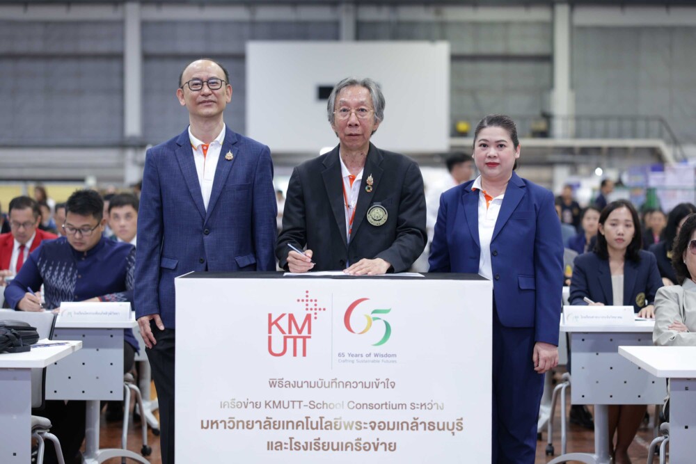 “ล่าสุดเราได้มีการทำความร่วมมือกับกองบัญชาการตำรวจสืบสวนสอบสวนอาชญากรรมทางเทคโนโลยี (สอท.) ในการจัดตั้ง “Hub of Knowledge” หรือ ศูนย์กลางแห่งความรู้ เพื่อเสริมสร้างการป้องกันและปราบปรามอาชญากรรมทางไซเบอร์ โดยมุ่งเน้นการพัฒนาเครื่องมือและเทคโนโลยีใหม่ๆ รวมถึงการให้ความรู้ในการรับมือกับภัยไซเบอร์ต่างๆ ให้ประชาชนทั่วไปที่จะดำเนินการผ่านแพลตฟอร์ม OneKMUTT ของ มจธ. และแอปพลิเคชัน ‘Cyber Check’ ของ สอท.” อธิการบดี มจธ.กล่าวและว่า มจธ. ยังคงมุ่งมั่นที่จะสร้างระบบการเรียนรู้ที่ครอบคลุมทุกมิติ เพื่อสนับสนุนให้ทุกคนในสังคมสามารถพัฒนาตนเองและก้าวสู่ความสำเร็จอย่างยั่งยืน มจธ. เชิญชวนทุกท่านร่วมเดินทางไปกับเรา เพื่อสร้างสังคมที่เต็มไปด้วยโอกาสและความก้าวหน้าสำหรับคนทุกคน