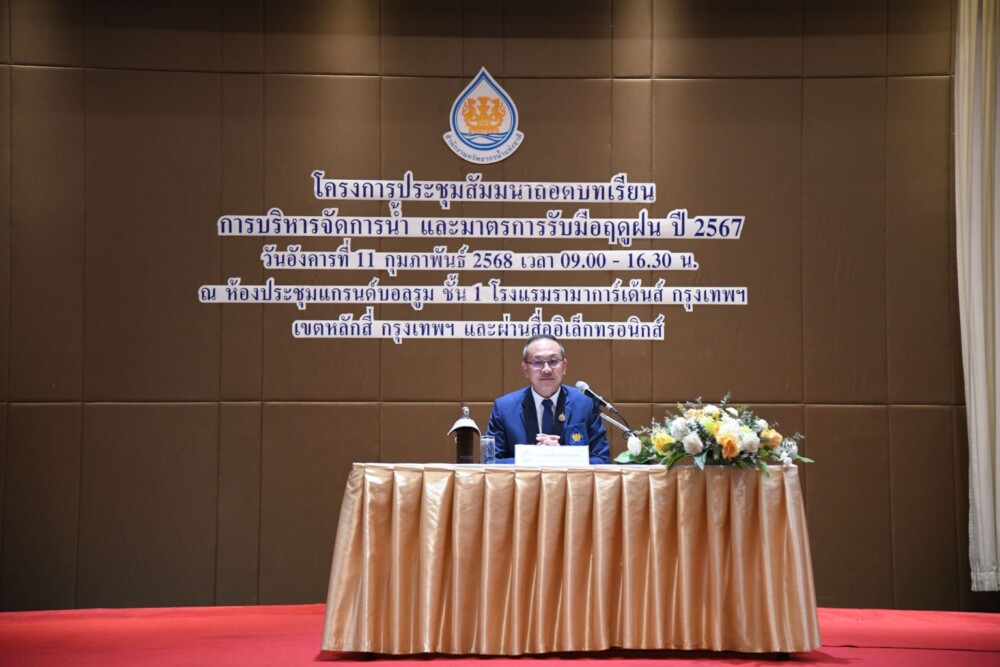 วันที่11 กุมภาพันธ์ 2568 ดร.สุรสีห์ กิตติมณฑล เลขาธิการสำนักงานทรัพยากรน้ำแห่งชาติ (สทนช.) เป็นประธานการประชุมสัมมนาถอดบทเรียนการบริหารจัดการน้ำและมาตรการรับมือในช่วงฤดูฝน ปี 2567 โดยมี นายไพฑูรย์ เก่งการช่าง รองเลขาธิการ สทนช. กล่าวรายงาน พร้อมด้วย นายเศวต เพชรนุ้ย รองผู้ว่าราชการจังหวัดนครสวรรค์ นายศรณ์จักร์ชัย ชูวาพิทักษ์ รองผู้ว่าราชการจังหวัดอุทัยธานี นายวิทศักดิ์ จำเริญนุสิต รองผู้ว่าราชการจังหวัดสุราษฎร์ธานี ผู้แทนหน่วยงานที่เกี่ยวข้องจาก 4 กระทรวง 37 หน่วยงาน ผู้ทรงคุณวุฒิ คณะกรรมการลุ่มน้ำและเครือข่ายองค์กรผู้ใช้น้ำ นักวิชาการ ภาคประชาชน และสื่อมวลชนแขนงต่างๆ เข้าร่วม กว่า 250 คน ณ โรงแรมรามาการ์เด้นส์ ถ.วิภาวดีรังสิต เขตหลักสี่ กรุงเทพฯ และผ่านสื่ออิเล็กทรอนิกส์