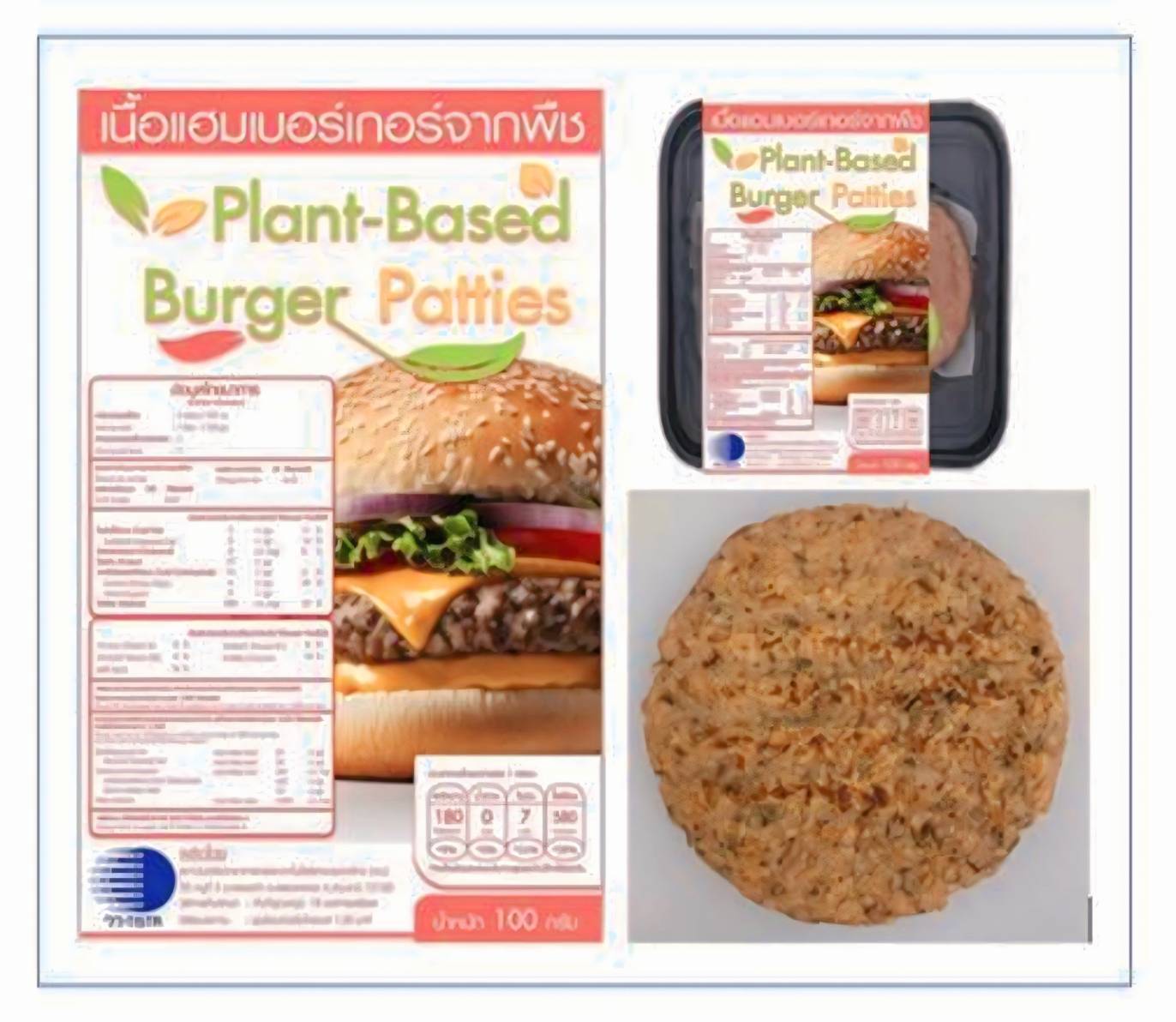 3) ผลิตภัณฑ์ไส้แฮมเบอร์เกอร์จากพืชในระดับกึ่งอุตสาหกรรม จากนวัตกรรมการผลิตไส้แฮมเบอร์เกอร์จากพืชในระดับห้องปฏิบัติการ ได้ถูกขยายกำลังการผลิตในระดับกึ่งอุตสาหกรรม ซึ่งจากผลการทดสอบทางโภชนาการพบว่า แฮมเอบร์เกอร์ดังกล่าวยังคงมีโปรตีนสูงและใยอาหารสูง (ตามประกาศกระทรวงสาธารณสุขฉบับที่ 445 เรื่อง ฉลากโภชนาการ) และมีค่าการทดสอบเชื้อจุลินทรีย์เป็นไปตามประกาศกระทรวงสาธารณสุข ฉบับที่ 416 เรื่อง กําหนดคุณภาพหรือมาตรฐาน หลักเกณฑ์เงื่อนไข และวิธีการในการตรวจวิเคราะห์ของอาหารด้านจุลินทรีย์ที่ทําให้เกิดโรค โดยผลิตภัณฑ์ไส้แฮมเบอร์เกอร์จากพืช ได้มีผู้ประกอบ คือ บริษัท ไทยฟู๊ด กรุ๊ป จำกัด (มหาชน) ซึ่งได้ร่วมทุนวิจัยรอรับการถ่ายทอดเทคโนโลยีการผลิตเรียบร้อยแล้ว