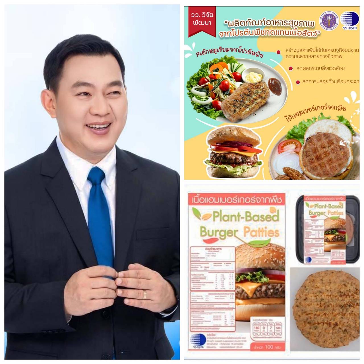“ความสำเร็จของ วว. ในการวิจัยและพัฒนา “ผลิตภัณฑ์อาหารสุขภาพจากโปรตีนพืชทดแทนเนื้อสัตว์” ดังกล่าว เป็นส่วนหนึ่งของการดำเนินงานที่เป็นรูปธรรมในการบูรณาการด้านวิทยาศาสตร์ เทคโนโลยี และนวัตกรรม เพื่อสร้างคุณค่ามูลค่าเพิ่มให้กับเศรษฐกิจประเทศบนฐานความหลากหลายทางชีวภาพ ตอบสนองการเพิ่มขีดความสามารถในการแข่งขัน และการพัฒนาประเทศอย่างยั่งยืน พร้อมทั้งถ่ายทอดเทคโนโลยีและนวัตกรรม สู่ภาคอุตสาหกรรม วิสาหกิจชุมชน และผลักดันให้เกิดการนําไปใช้ประโยชน์ทั้งเชิงเศรษฐกิจ สังคม และสิ่งแวดล้อมอย่างยั่งยืน” ผู้ว่าการ วว. กล่าว