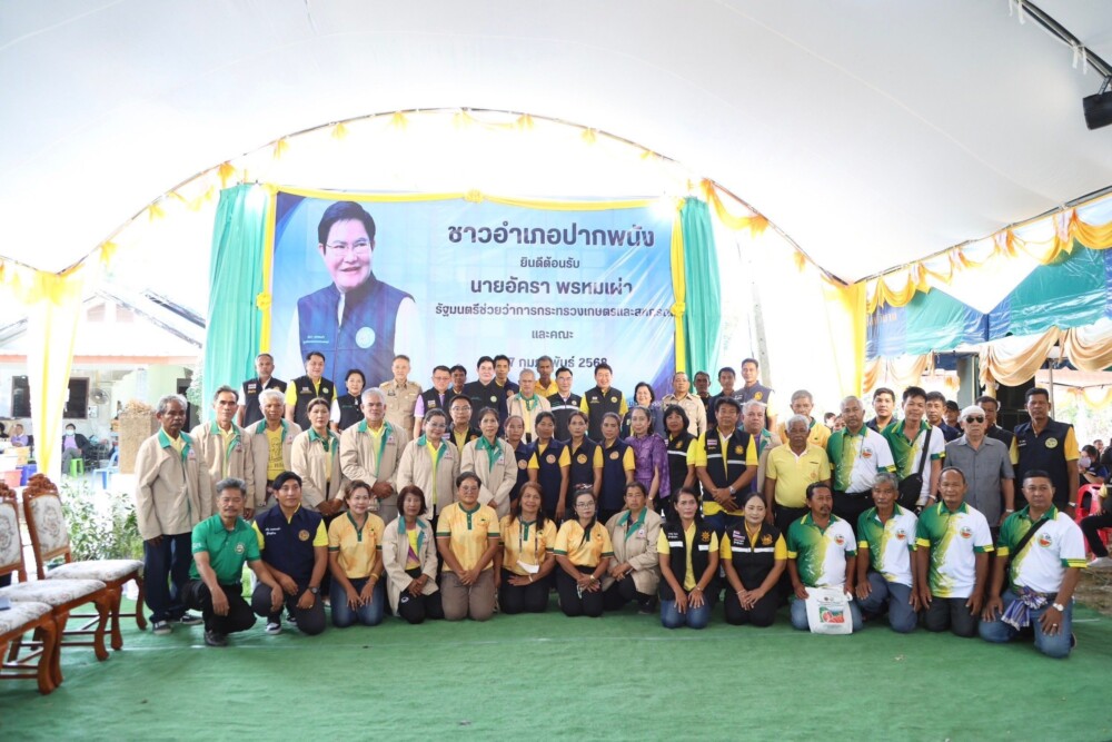 นายอัครา พรหมเผ่า รัฐมนตรีช่วยว่าการกระทรวงเกษตรและสหกรณ์ ลงพื้นที่พบปะเกษตรกร และติดตามการดำเนินงานของศูนย์เรียนรู้การปลูกส้มโอทับทิมสยาม ณ บ้านแสงวิมาน อ.ปากพนัง จ.นครศรีธรรมราช ซึ่งศูนย์เรียนรู้ดังกล่าว อยู่ภายใต้พื้นที่โครงการพัฒนาพื้นที่ลุ่มน้ำปากพนัง อันเนื่องมาจากพระราชดำริ โดยมีนาย อิมรอน แสงวิมาน หมอดินอาสาเป็นเจ้าของ ซึ่งพื้นที่แห่งนี้เคยประสบปัญหาการระบายน้ำในหน้าฝน ทำให้น้ำท่วมขังในแปลง และมีการใช้สารเคมีอย่างต่อเนื่อง ทำให้ดินเสื่อมคุณภาพและปัญหาดินเปรี้ยวจัด