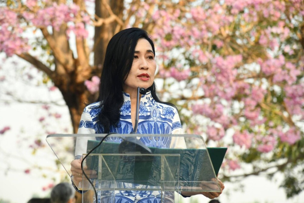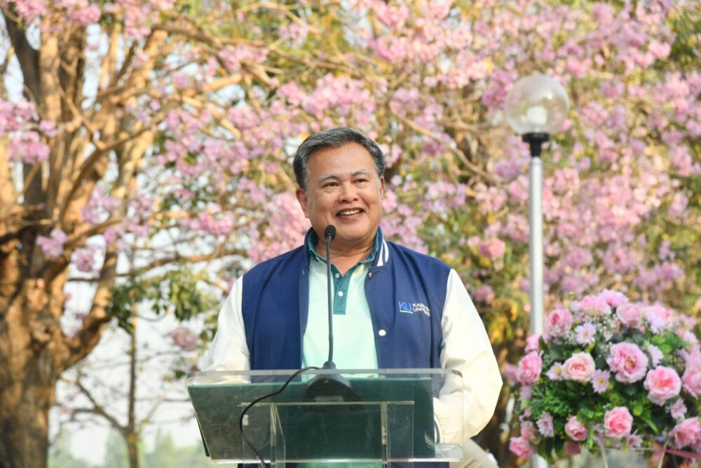มหาวิทยาลัยเกษตรศาสตร์ (มก.)วิทยาเขตกำแพงแสน เปิดแล้ว “เทศกาลชมพูพันธุ์ทิพย์” ประจำปี 2568 ในการเปิดงานมี ดร.ดำรงค์ ศรีพระราม รักษาการแทนอธิการบดีมหาวิทยาลัยเกษตรศาสตร์ กล่าวต้อนรับและรายงานวัตถุประสงค์การจัดงาน และได้รับเกียรติจาก นางสาวอโรชา นันทมนตรี ผู้ว่าราชการจังหวัดนครปฐม เป็นประธานกล่าวเปิดงาน ซึ่งมีผู้บริหารมหาวิทยาลัย เกษตรศาสตร์ หัวหน้าส่วนราชการกำแพงแสน จังหวัดนครปฐม และแขกผู้มีเกียรติ ร่วมตัดริบบิ้นเปิดงานเป็นจำนวนมาก