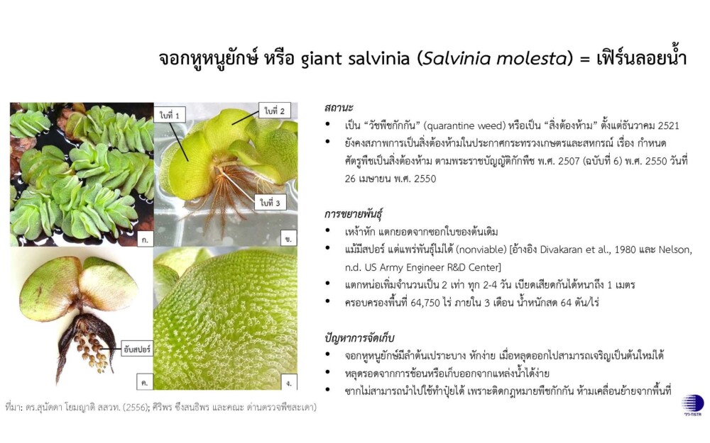 จอกหูหนูยักษ์ เป็นวัชพืชน้ำชนิดใหม่และกำจัดได้ยาก ที่มีการขยายพันธุ์อย่างรวดเร็วบริเวณทะเลสาบสงขลา และแหล่งน้ำอื่นๆ ของประเทศ ส่งผลให้เกิดปัญหาการกีดขวางทางระบายน้ำและการสัญจรทางน้ำ รวมถึงปัญหาด้านคุณภาพน้ำ ทั้งนี้ อันเป็นผลจากการประชุมคณะรัฐมนตรี ครั้งที่ 1/2568 และติดตามการตรวจราชการกลุ่มจังหวัดภาคใต้ฝั่งอ่าวไทย ณ จังหวัดพัทลุงและสงขลา เพื่อรับฟังปัญหาพี่น้องประชาชนของ นางสาวแพทองธาร ชินวัตร นายกรัฐมนตรี