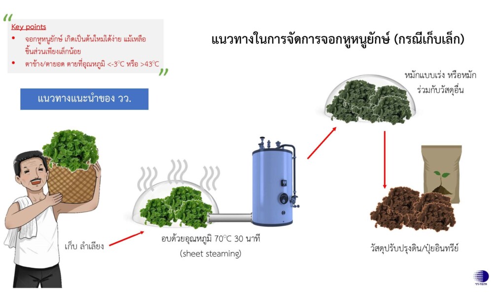 ผู้ว่าฯ วว. ร่วมเสนอแนะ 2 แนวทางในการจัดการวัชพืชน้ำ “จอกหูหนูยักษ์” ด้วยการนำมาเพิ่มมูลค่าด้วยเครื่องผลิตวัสดุหมักแบบเร่ง วว. และการจัดการวัชพืชน้ำนำจอกหูหนูยักษ์ผ่านกระบวนการนึ่งอบไอน้ำระดับชุมชน หวังสู่การเพิ่มมูลค่าและข้าไปแก้ไขปัญหาสิ่งแวดล้อมของประเทศให้ยั่งยืน