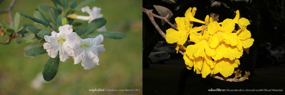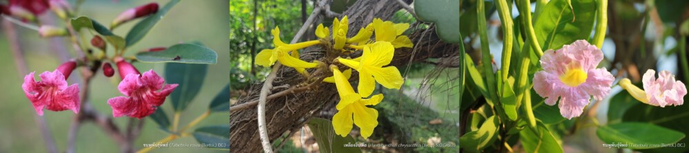 ทั้งนี้ประเทศไทยได้นำไม้ต้นในกลุ่มนี้ เข้ามาปลูกเป็นไม้ประดับหลายชนิ ด โดยชนิดที่ได้รับความนิยมปลูกกั นอย่างแพร่หลาย ได้แก่ ชมพูพันธุ์ทิพย์ ซึ่งหม่อมราชวงศ์พันธุ์ทิพย์ บริพัตร ในพระเจ้าวรวงศ์เธอ พระองค์เจ้าจุมภฏพงษ์บริพัตร กรมหมื่นนครสวรรค์ศักดิพินิต ได้นำเข้ามาประมาณปี พ.ศ. 2490 นอกจากนี้ยังมี เหลืองปรีดียาธร ซึ่งตั้งชื่อตามหม่อมราชวงศ์ปรี ดิยาธร เทวกุล และเหลืองอินเดีย จัดอยู่ในสกุล Tabebuia แต่ภายหลังจากการศึกษาด้ านความสัมพันธ์ทางโมเลกุล นักพฤกษศาสตร์ได้จำแนกออกเป็น 3 สกุลดังกล่าว โดยในช่วงเดือนกุมภาพันธ์ถึงมี นาคมของทุกปีจะเป็นช่วงที่ ดอกชมพูพันธุ์ทิพย์บานสะพรั่งทั่ วประเทศ ไม่ว่าจะเป็นริมถนน สวนสาธารณะ หรือสถานที่ราชการต่าง ๆ