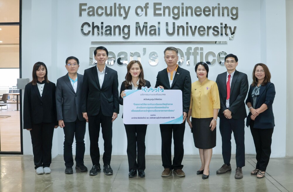 (จากซ้ายไปขวา)1.นางสาวพัชรินทร์ เงินใบอ่อน Carbon Neutrality Department Manager บริษัทสยามคูโบต้าคอร์ปอเรชั่น จำกัด, 2.นายเฉลิมชัย กิตติบัณฑร ผู้จัดการอาวุโส – สำนักงานขายภาคเหนือ บริษัทสยามคูโบต้าคอร์ปอเรชั่น จำกัด, 3.นายรัชกฤต สงวนชีวิน ผู้จัดการฝ่าย Sustainability Development บริษัทสยามคูโบต้าคอร์ปอเรชั่น จำกัด ,4.นางวราภรณ์ โอสถาพันธุ์ กรรมการรองผู้จัดการใหญ่อาวุโส บริษัทสยามคูโบต้าคอร์ปอเรชั่น จำกัด, 5.รองศาสตราจารย์ ดร.ธงชัย ฟองสมุทร คณบดีคณะวิศวกรรมศาสตร์ มหาวิทยาลัยเชียงใหม่, 6.ผู้ช่วยศาสตราจารย์ ดร.ดรุณี นาพรหม คณบดีคณะเกษตรศาสตร์ มหาวิทยาลัยเชียงใหม่, 7.รองศาสตราจารย์ ดร.ธรณิศวร์ ดีทายาท หัวหน้าโครงการวิจัยฯ และอาจารย์ประจำภาควิชาวิศวกรรมเครื่องกล มหาวิทยาลัยเชียงใหม่, และ 8.ศาสตราจารย์ ดร.พวงรัตน์ แก้วล้อม ที่ปรึกษาโครงการวิจัยฯ และอาจารย์ประจำภาควิชาวิศวกรรมสิ่งแวดล้อม มหาวิทยาลัยเชียงใหม่