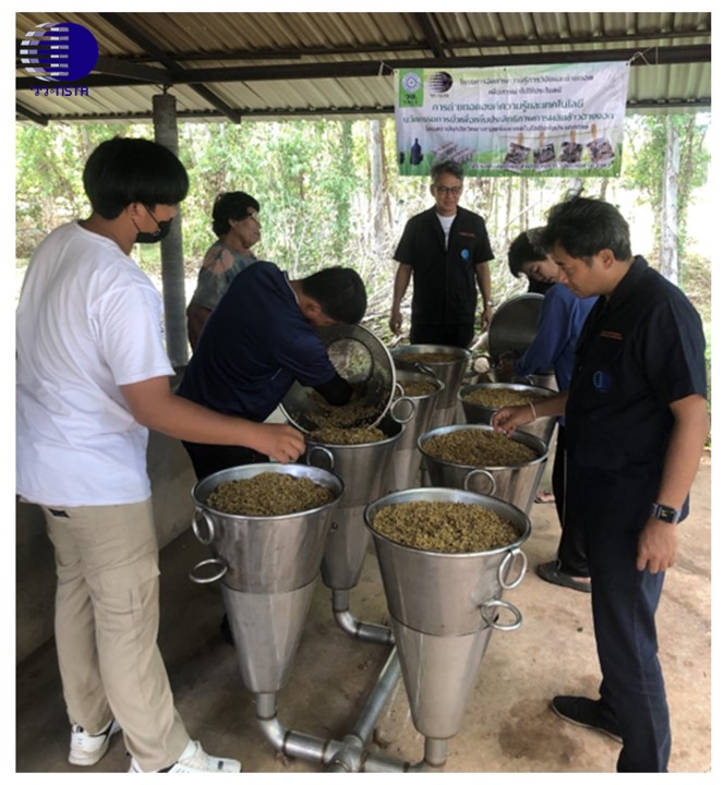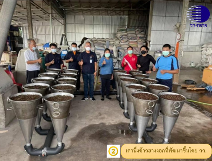 กระทรวงการอุดมศึกษา วิทยาศาสตร์ วิจัยและนวัตกรรม (อว.) โดย ศูนย์เชี่ยวชาญนวัตกรรมหุ่นยนต์และเครื่องจักกลอัตโนมัติ(ศนย.) สถาบันวิจัยวิทยาศาสตร์และเทคโนโลยีแห่งประเทศไทย (วว.) ได้เล็งเห็นความสำคัญของปัญหาที่เกิดขึ้นในกระบวนการนึ่งในการผลิตข้าวฮางงอกที่เกิดการสูญเสียพลังงานสูง จึงได้พัฒนาและออกแบบ “นวัตกรรมการนึ่งเพื่อเพิ่มประสิทธิภาพผลิตข้าวฮางงอก” และจัดสร้างอุปกรณ์ท่อนำไอน้ำแรงดันต่ำแยกทิศทางสำหรับใช้ในกระบวนการนึ่งข้าวฮางงอก