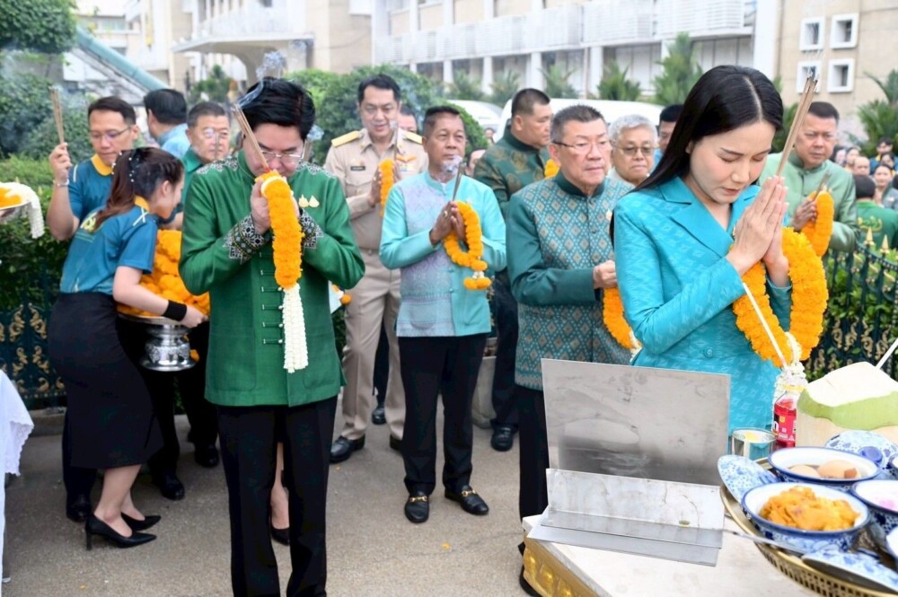 ห้องพระอาคาร 1 ชั้น 4 (ห้องพระพิรุณ 130) สักการะศาลพระภูมิ สักการะศาลท้าวเวสสุวรรณ สักการะศาลตา – ยาย สักการะองค์พระพิรุณทรงนาค และสักการะองค์พระพิรุณทรงนาค (ห้องพิพิธภัณฑ์) จากนั้นร่วมพิธีเจริญพระพุทธมนต์ โดยพระสงฆ์จากวัดอรุณราชวรารามราชวรมหาวิหาร จำนวน 10 รูป พร้อมถวายผ้าไตร จตุปัจจัยเครื่องไทยธรรม และถวายปิ่นโตแด่พระสงฆ์ เพื่อความเป็นสิริมงคลแก่ผู้บริหาร และบุคลากรในสังกัด