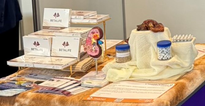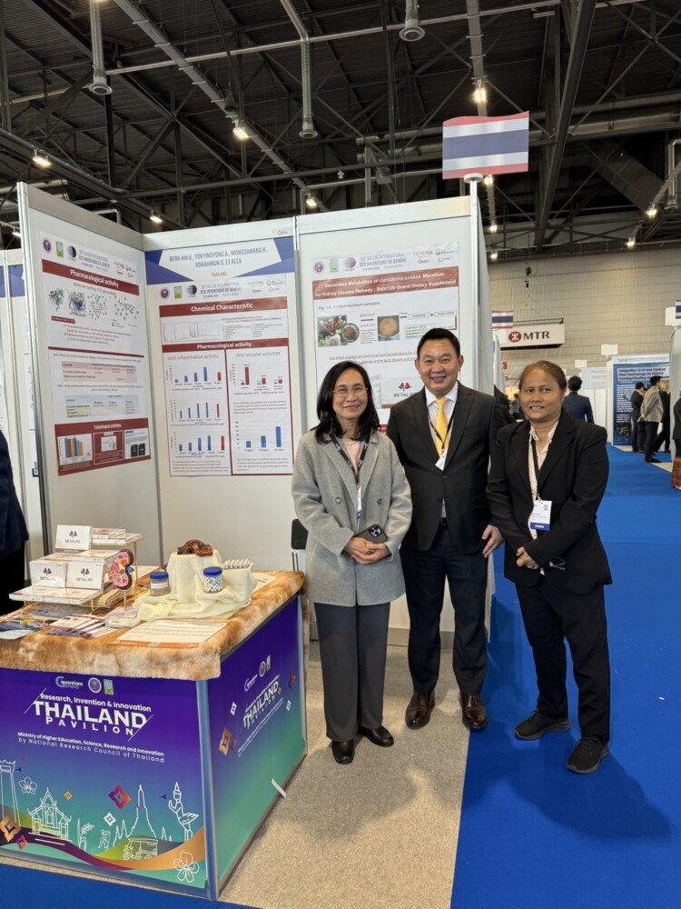 ในการนี้ ผศ.ดร.วีรชัย อาจหาญ ผู้ว่าการ สถาบันวิจัยวิทยาศาสตร์และเทคโนโลยีแห่งประเทศไทย ( วว.) ได้นำเสนอผลงาน “สารออกฤทธิ์ทุติยภูมิจากเห็ดหลินจือแดงสำหรับบรรเทาอาการของโรคไต” ในรูปแบบ ผลิตภัณฑ์เสริมอาหาร ตราเบต้าไลฟ์ ซึ่ง วว. ได้ถ่ายทอดเทคโนโลยีเชิงพาณิชย์ให้แก่ บริษัท โฮปฟูล จำกัด และบริษัทโอดี สไตล์ จำกัด และเข้าร่วมจัดแสดงนิทรรศการดังกล่าว และโอกาสเดียวกัน ดร.ชุติมา เอี่ยมโชติชวลิต ประธานคณะกรรมการบริหาร หน่วยบริหารจัดการทุนด้านการเพิ่มความสามารถในการแข่งขันของประเทศ (บพข.) และอดีตผู้ว่าการ วว. ร่วมเยี่ยมชมนิทรรศการและให้กำลังใจนักวิจัยของ วว. ด้วย