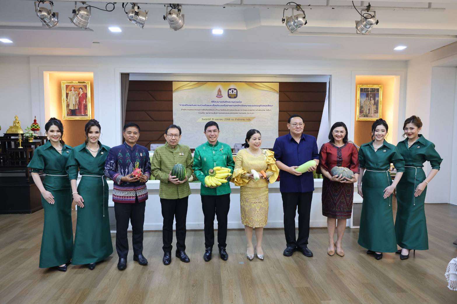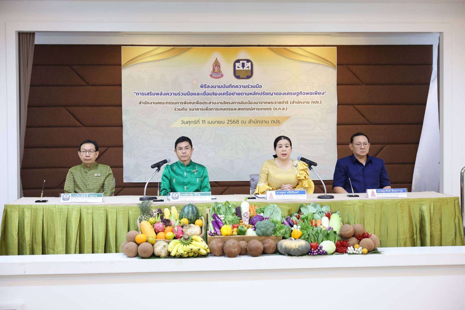 วันที่ 11 เมษายน 2568 สำนักงานคณะกรรมการพิเศษเพื่อประสานงานโครงการอันเนื่องมาจากพระราชดำริ (สำนักงาน กปร.) ร่วมกับ ธนาคารเพื่อการเกษตรและสหกรณ์การเกษตร(ธ.ก.ส.) ได้ลงนามในบันทึกข้อตกลงความร่วมมือ (MOU) “การเสริมพลังความร่วมมือและเชื่อมโยงเครือข่ายตามหลักปรัชญาของเศรษฐกิจพอเพียง”