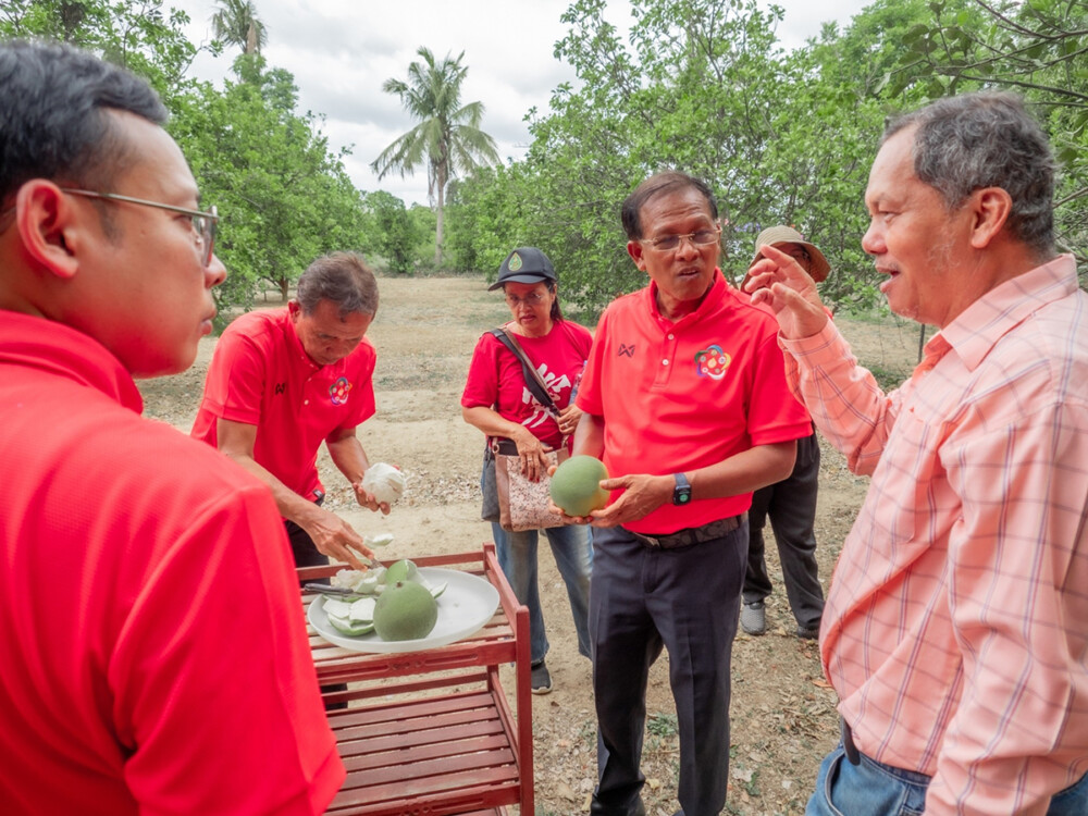 ดังนั้นทางกรมวิชาการเกษตร ได้บูรณาการงานวิจัยและพัฒนา โดยนำเทคโนโลยีและนวัตกรรมแปรรู ปวัสดุเหลือทิ้ งทางการเกษตรมาเป็นผลิตภัณฑ์ เสริมอาหาร เพื่อแก้ปัญหาขยะจากเปลือกส้ มโอที่มีปริ มาณมากของเกษตรกรชาวสวนส้มโอ ช่วยลดการสูญเสียอาหารที่ กลายเป็นขยะอาหารของประเทศไทย เพิ่มขีดความสามารถทางการแข่งขั น และเสริมสร้างความเข้มแข็งอย่ างยั่งยืนให้กับอุ ตสาหกรรมเกษตรไทยในตลาดโลก สอดคล้องกับนโยบายการขับเคลื่อน BCG สำหรับเกษตรกรและผู้ประกอบการที่ สนใจสามารถสอบถามข้อมูลเพิ่มเติ มได้ที่กลุ่มวิจัยเทคโนโลยีชี วภาพทางการเกษตร สำนักวิจัยพัฒนาเทคโนโลยีชีวภาพ โทรศัพท์ 0 2904 6885 ต่อ 95