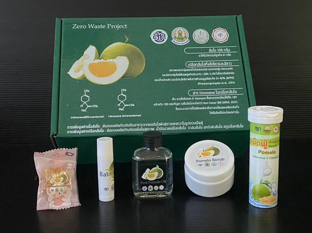 สำนักวิจัยพัฒนาเทคโนโลยีชีวภาพ ได้เล็งเห็นถึงความสำคัญในการจั ดการเปลี่ยนขยะให้เป็นศูนย์ จึงได้ดำเนินโครงการวิจัยพั ฒนานวัตกรรมการแปรรูปผลไม้ที่ ไม่ได้คุณภาพโดยนำร่องกับส้ มโอขาวแตงกวาที่บางฤดูกาลมี ขนาดไม่ได้มาตรฐานหรือไม่ สวยงามตามความนิยมของผู้บริโภค เช่น ส้มโอที่มีผิวและทรงไม่สวย เปลือกหนา รสชาติไม่หวาน โดยนำเนื้อและเปลือกของส้ มโอขาวแตงกวาชัยนาทมาผลิตเป็ นผลิตภัณฑ์เสริมอาหาร ได้แก่ เม็ดฟู่ส้มโอขาวแตงกวา เยลลี่กัมมี่ส้มโอขาวแตงกวา บาล์มอโรม่าส้มโอขาวแตงกวา และสครับขัดผิวส้มโอขาวแตงกวา เป็นการสร้างมูลค่าเพิ่มให้กั บเนื้อและเปลือกของส้ มโอขาวแตงกวาชัยนาท
