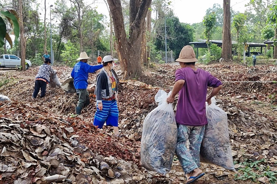 สุนีย์ ศรีอร นำใบไม้ 10 กิโลกรัม มาแลกไข่ไก่ไปรับประทานได้ 10 ฟอง บอกว่า ก่อนหน้านี้เก็บใบไม้กองไว้ที่บ้านและที่สวน บางทีก็ทำเป็นปุ๋ยหมักเล็กๆน้อยๆ แต่พอมีโครงการนี้ก็เข้าร่วมในทันที เพราะเห็นประโยชน์ทั้งเรื่องการจัดการกับเศษใบไม้โดยไม่ต้องเผา และยังได้ไข่ไก่ไปบริโภค