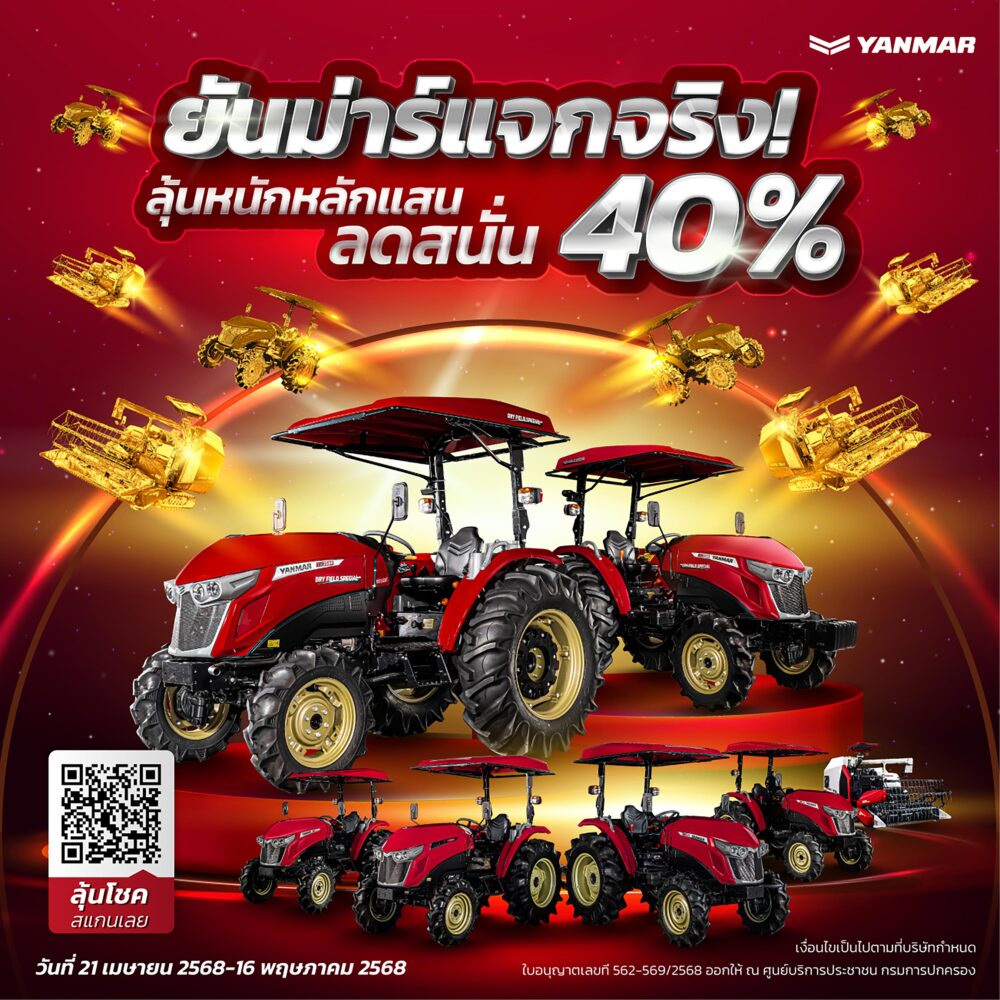 บริษัท ยันม่าร์ เอส.พี.จำกัด (ประเทศไทย) ผู้นำนวัตกรรมทางเทคโนโลยีการเกษตรและผู้ผลิตเครื่องมืออุตสาหกรรมแบบครบวงจร จัดแคมเปญฯ “ยันม่าร์ ลุ้นหนักหลักแสน ลดสนั่น 40%” คืนกำไรให้เกษตรไทย ลุ้นรับส่วนลดในการซื้อผลิตภัณฑ์ยันม่าร์ ทั้งรถแทรกเตอร์และรถเกี่ยวนวดข้าว มูลค่ารวมของรางวัลกว่า 117 ล้านบาท ของรางวัลสำหรับกิจกรรมนี้ ได้แก่