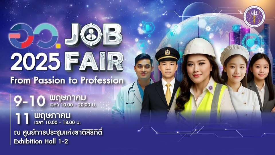 กระทรวงอุดมศึกษาฯ เตรียมจัดงาน “อว. JOB FAIR 2025” ภายใต้แนวคิด From Passion to Profession – เปลี่ยนความฝันให้เป็นอาชีพจริง ! พร้อมเปิดรับสมัครงานคุณภาพกว่า 150,000 ตำแหน่ง ครอบคลุมทุกอุตสาหกรรม สมัครเสร็จ-สัมภาษณ์-รู้ผลภายในงานเดียว ระหว่างวันที่ 9-11 พฤษภาคม 2568 ณ Exhibition Hall 1–2 ศูนย์การประชุมแห่งชาติสิริกิติ์