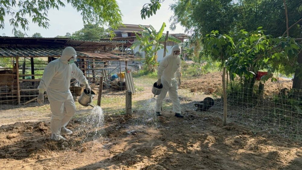 ทั้งนี้ การสอบสวนโรคเพื่อหาแหล่งที่มาของเชื้ออยู่ระหว่างการดำเนินการโดยนักวิชาการ ผู้เชี่ยวชาญ ในการสอบสวนโรคทางระบาดวิทยาของกรมปศุสัตว์และกรมควบคุมโรค จากรายงานของกรมควบคุมโรค ณ วันที่ 5 พฤษภาคม 2568 พบว่า ผู้ติดเชื้อยังอยู่ในวงจำกัดเฉพาะในหมู่บ้านที่ตำบลเหล่าหมี อำเภอดอนตาล จังหวัดมุกดาหาร ขณะนี้พบผู้ติดเชื้อในคน รวม 4 ราย โดยรายแรกเสียชีวิต ส่วนอีก 3 ราย มีอาการเป็นแผลที่ผิวหนัง และอยู่ระหว่างรักษา